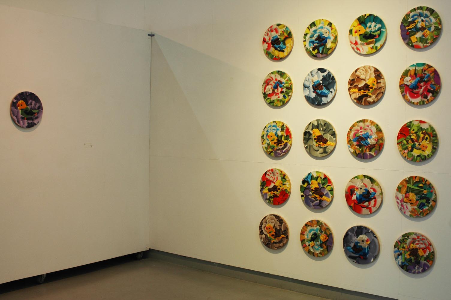 마저 작가는 블록으로 나타난 패턴을 보여준다. 감정적 주체 ‘아가마가’를 만들어 이야기를 시작한다. ‘아가마가’라는 뜻은 기표는 있으나 기의가 없는 특정인과의 약속된 기호이다. 작가는 민화에 나오는 꽃을 플라스틱으로 만들고 거기에 레고새를 그렸다. 작가가 전 작품에서 공간을 통해 관계적인 이야기를 했다면 이번 작품에서는 아주 사적인 관계의 이야기들을 레고새를 통해 말하고자 한다. 그래서 새는 관계의 매개물이 된다. 동시에 레고새는 수호자이며 관계의 주체이자 타자와의 비밀스런 감정을 연결해주는 마음의 알레고리이다.